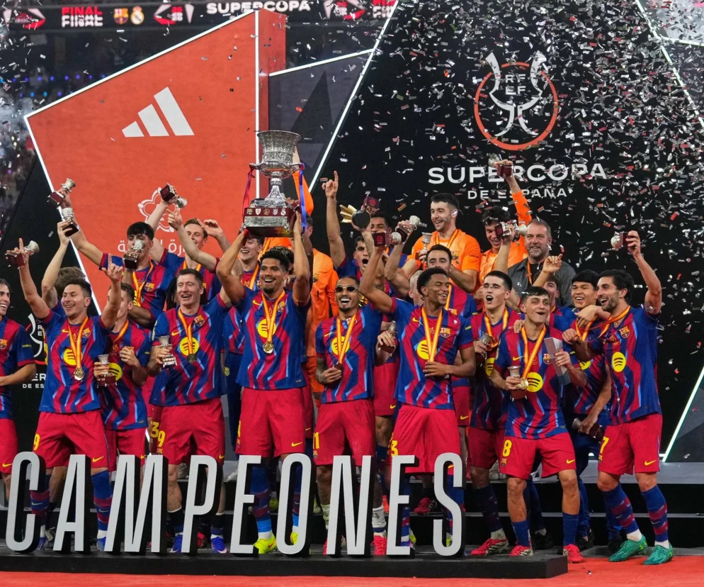 El Clasico znów nie zawiodło. W finale Superpucharu Hiszpanii FC Barcelona po niesamowitym widowisku pokonała Real Madryt 3:2, broniąc tym samym tytułu wywalczonego przed rokiem. Robert Lewandowski, choć grał tylko nieco ponad godzinę, zaznaczył swoją obecność golem w kluczowym momencie meczu.Spotkanie rozegrane w Dżuddzie toczone było w niesamowitym tempie, a kibice zgromadzeni na stadionie w Arabii Saudyjskiej byli świadkami jednej z najbardziej szalonych końcówek pierwszej połowy w historii tych rozgrywek. Wynik otworzył w 36. minucie Raphinha, ale prawdziwe emocje zaczęły się w doliczonym czasie gry. Najpierw w drugiej minucie doliczonego czasu gry wyrównał Vinicius Junior, ale odpowiedź Barcelony była błyskawiczna.